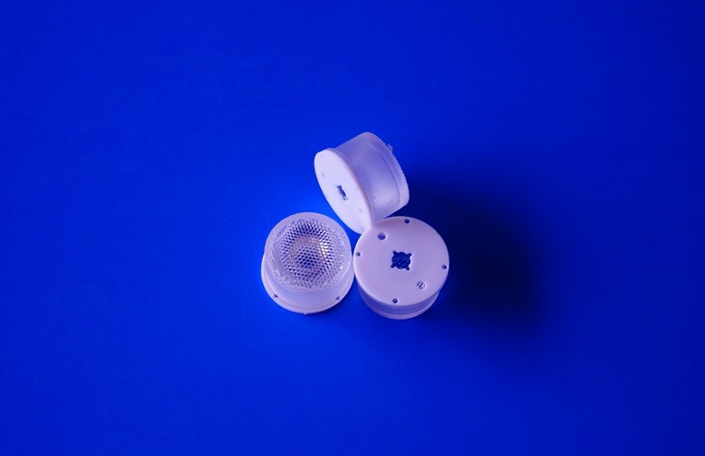 Το υλικό του οδηγημένου οπτικού φακού αποτελείται από αρίστης ποιότητας PMMA, το ποσοστό μετάδοσης είναι επάνω από 93%.We μπορεί να παρέχει περισσότερες γωνίες ακτίνων. Αυτός ο φακός κατάλληλος για το xpe Leds.
